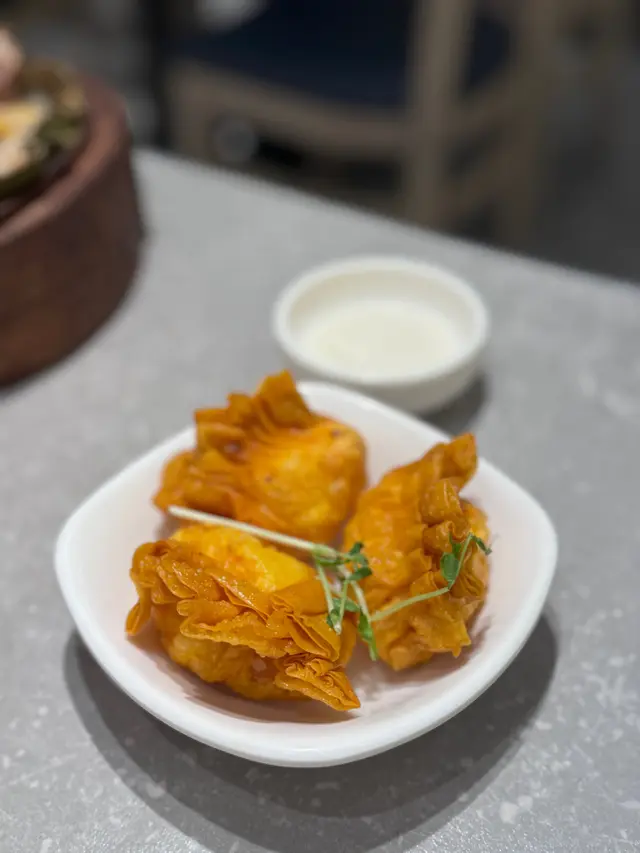好難得夜晚都搵到間坐得舒服嘅點心舖,又可以嗌2粒咁人少少都可以食😝蝦餃(2粒) $16皮薄煙韌蝦肉飽滿,點辣椒油仲正😆沙律明蝦角 $29新鮮炸起熱辣辣🔥超多蝦肉的!上海小籠包 $25超爆多汁!!皮薄,超推介👍🏻👍🏻籠仔金針雲耳雞飯 $38大大籠,雞滑,飯入味,真係幾正金沙脆皮銀蘿腸 $29炸皮包住蘿白再包腸粉,好多重口感楊枝甘露 $22 最後來個甜品😆好濃,芒果唔算酸又唔算甜,同甜甜嘅糖水幾夾,幾抵食凍奶茶 $18凍檸茶 $18飲茶都可以滿足飲凍飲嘅慾望👅…查看更多