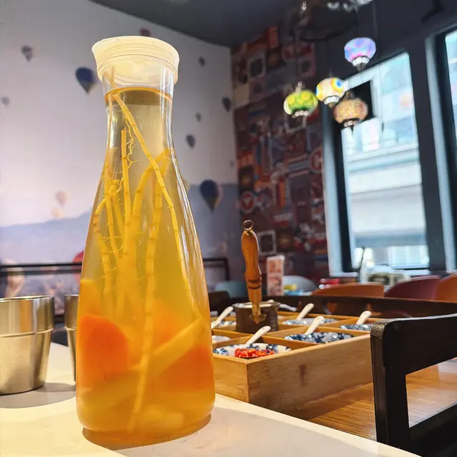 ✨火鍋隨意門非一般火鍋店,門口進內有驚喜,隆重土耳其吊燈飾超華麗,餐具、佈置、枱凳、就連牙籤筒都好有品味,舒適環境一流👍🏻***** ***** ***** ***** *****秘製消暑椰漿雞濃湯鍋🥘金黃色的濃湯底,椰子味鮮香撲鼻,先先淨飲咗兩碗湯才開始吃雞,雞肉鮮嫩,吸收咗湯底精華。蘋果木煙燻手切牛頸脊(細) 🥩牛頸脊雪花分布均勻,而且帶有果香味,感覺非常獨特。自製手工餃子-韭菜豬肉餃🥟皮薄餡靚,用料十足,粒粒彈牙,食完想再食的。日本廣島蠔🦪飽滿,而且脹卜卜日本廣島蠔,蠔味十足。蔬菜拼盤、芋絲🥬🌽🍅拼盤蔬菜非常多種類,乜顏色都有。自家製竹蔗茅根(1渣)🍹是竹蔗的天然香甜,而且帶有茅根的微澀,純正天然的味道,非常清潤。…查看更多