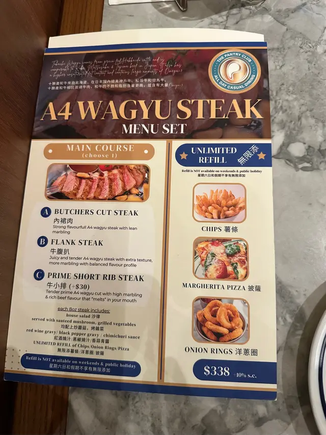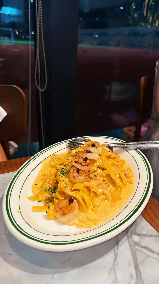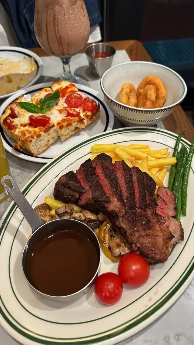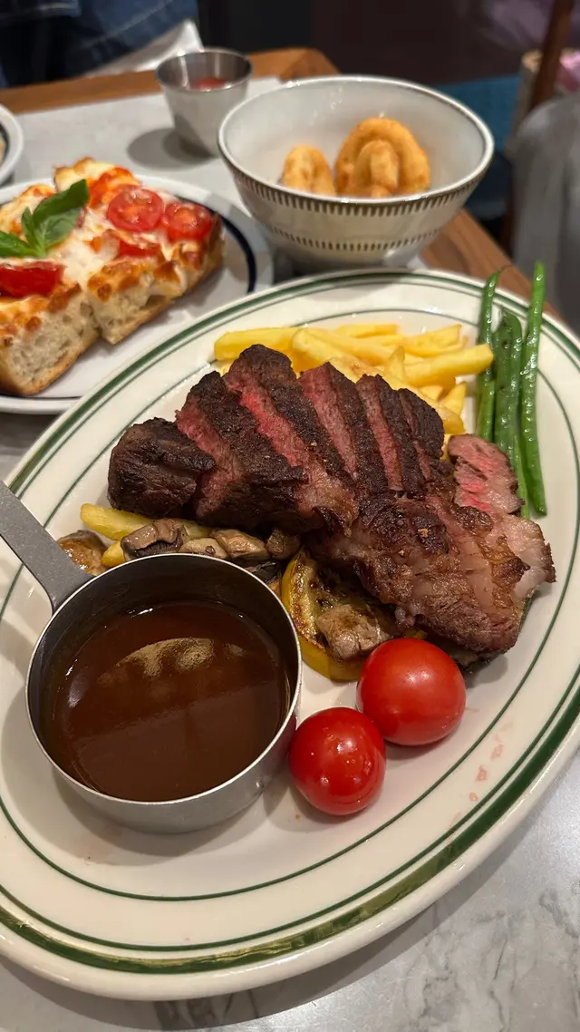 可以邊食A4和牛、邊望住球場落地玻璃景⚽️一邊食飯一邊睇人跑步🏃🏻‍♂️chill爆 🤩 估唔到$338就有和牛set 🥩 仲可以免費任添pizza薯條洋蔥圈🍟CP值勁高! ✨ 主角登場|A4和牛牛小排set($338)肉芯粉嫩 🩷 外皮微焦,入口超嫩肉汁爆發 脂香輕盈不膩,牛味濃郁 🥩 配上紅酒汁 🍷 牛肉鮮味頂到盡 套餐任添3大恩物:1️⃣ 瑪格麗特Pizza🍕 我會話呢個Pizza真係全餐飯最有驚喜!Pizza厚底鬆軟 + 底脆卜卜,好有嚼勁 芝士量爆燈 🧀 仲可以拉絲!免費任食仲咁認真做,抵到癲 🥹 2️⃣ 薯條🍟 3️⃣ 洋蔥圈🧅 新鮮即炸,熱辣辣好脆口!Encore要等一陣,不過一出爐香到停唔到口🤤忍唔住嗌多round 🥹 🍝 海膽忌廉帶子手工闊麵($168)忌廉汁超creamy,加上海膽鮮味 🦪 配料超多:蘑菇 🍄、墨魚籽、煎到金黃嘅帶子 🔥 墨魚籽喺口中爆開配上海膽汁鮮香海味爆發,配上有嚼勁嘅手工闊麵,掛汁到差啲想舐碟 🤭 🥞 Banoffee焦糖燉蛋疏乎厘Pancake($122)The Pantry 招牌甜品從來唔會令人失望🍯 外脆焦糖皮 + 超鬆軟疏乎厘 😋 口感超豐富配香蕉🍌士多啤梨🍓甜而不膩超滿足😻 🥤 花生醬朱古力香蕉奶昔($75)濃稠到好似一杯甜品 🍫 花生醬 + 朱古力醬 + 粒粒花生,勁飽肚又邪惡 😂 未食正餐已經飽咗🫄🏽🥂 橙汁梳打($48)驚喜位係估唔到用新鮮橙汁🍊飲落有果肉粒粒 !清新微酸,食完炸物牛扒啱啱好解膩 ~📌 以和牛質素+任食配搭嚟講👐🏻真係抵到唔駛諗 💯 👉 去啟德行街 / 睇演唱會前,絕對要嚟食! ⚠️ 不過要留意和牛set只限平日供應!千祈唔好白撞啊😽抵食指數:🌕🌕🌕🌕🌑好味指數:🌕🌕🌕🌕🌗📌 The Pantry Club ❀ 九龍城啟德承啟道38-39號啟德體育園啟德零售館3 G樓M3-005號舖#hongkong #hkfoodie #foodiehk #hkfood#hkfoodblogger #hkfoodstagram #hkfoodshare #hkfoodblog #hkfoodlover #香港好去處 #香港必去 #香港美食 #香港必吃 #啟德美食 #香港bagel #打卡美食 #打卡餐廳 #啟德西餐 #啟德美食 #啟德體育園#打卡美食 #打卡餐廳 #打卡cafe #香港西餐…查看更多