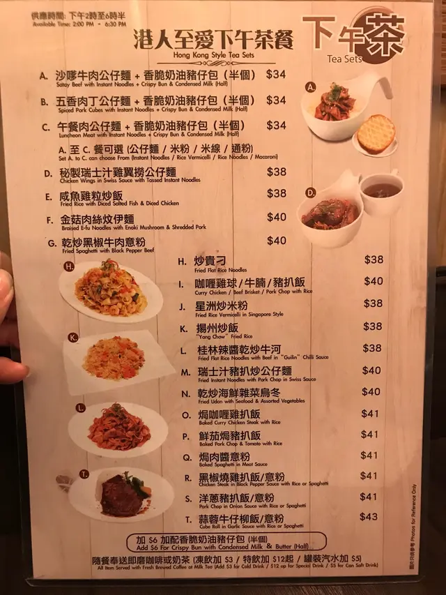 下午茶當晚餐 香港18餐廳 2018-04-09呢度下午茶餐至6點。5點幾去到。啱晒我。輕食下午茶餐或重手點,當埋晚餐的選擇也有。我就梗係食埋當作晚餐啦。我就食呢個 蒜蓉牛仔柳意粉$43。朋友就食沙嗲牛肉公仔麵+香脆奶油豬仔包(半個)$34。要讚呢個沙嗲湯。並沒有「水寧寧」。更要讚那脆豬。真的堅脆。杯奶茶還可以。…查看更多+ 1以上食记乃用户个人意见 , 并不代表OpenRice之观点。赞好分享下午茶當晚餐 香港18餐廳 https://s.openrice.com/QrLT0Xn0k00检举 张贴 评分3味道3环境3服务3卫生3抵食用餐途径堂食