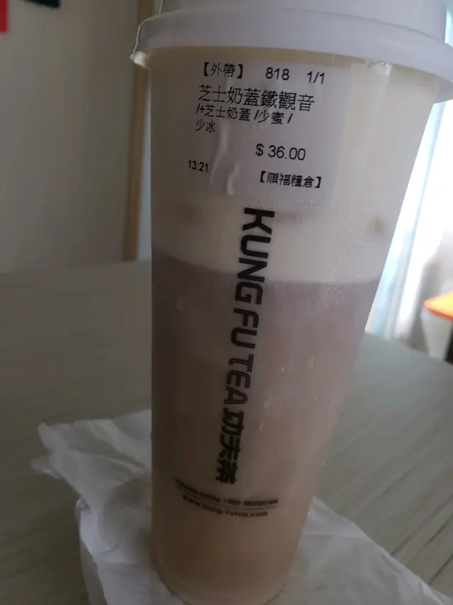 新開一試 :芝士奶蓋鐵觀音唔係好飲到鐵觀音茶味..............可能是茶底的問題芝士奶蓋偏甜 .............冇咩芝士味只有奶味........口感不是厚厚的奶蓋是水水的.............味道好似叫左杯奶水.............唔想晒野所以都飲左一半............跟住都頂唔到要waste..........可能係試業期間水準未調較好..............…查看更多