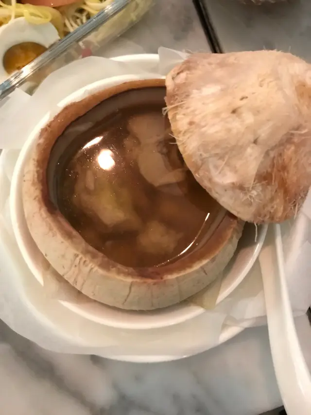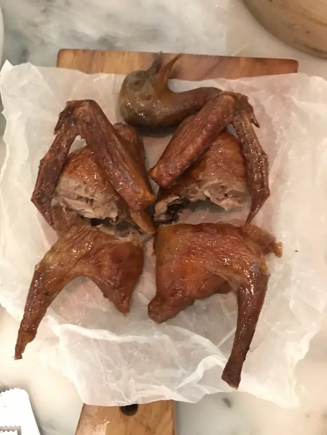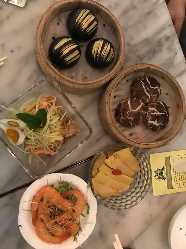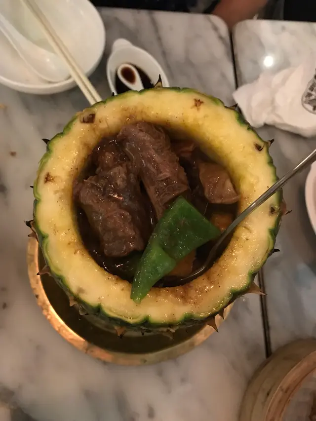 晚餐試下特式中菜,的確唔錯,有創意又保留味道!黑金流沙,上面的金粉拍照好靚,而奶黃餅餡超級流質,正!松靈香菇好似冬菇其實係包,好逼真又軟軟!前菜三拼分別點了芒果沙律,醉雞和醉蝦。醉雞醉蝦都好惹味,酒香帶少少麻辣,又爽口,正!乳鴿5月優惠超平,香口又惹味!每人一隻手套方便用手食。燉湯不過不失。火焰菠蘿上菜時好有氣勢,內裡是菠蘿青椒炆牛腩,入味又夠淋,唔錯!金菇翠苗原來金菇炸過,和翠苗一起入口配合很好,有驚喜!環境裝修唔錯,係較多座位較逼,人聲較嘈,不過可接受。服務員態度不錯!…查看更多