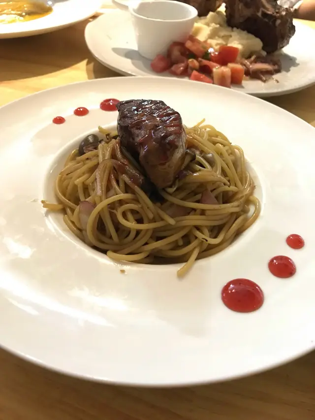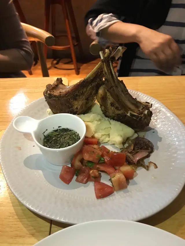 朋友約會找聚腳點,網上見到好評,就來一試。餐廳左工業大廈內,位近地鐵站十分方便。餐廳佈置簡單但舒服開揚,座位闊落,不限時交枱是朋友暢所欲言的好地方。食物方面,晚餐只有dinner set, 價錢相當。跟餐的蒜蓉包及南瓜濃湯十分好味。湯很稠,明顯是將南瓜慢慢煮溶,驚喜!‘䳘肝意大利粉’的意大粉煮得亁身,還好有油汁配撘入口,䳘肝雖不是入口即溶的質素,但兩邊煎過,也十分香口,有䳘肝的油味。‘大蝦青口海鮮意大利飯’的海鮮材料很多,並混合了糙米,飯粒偏硬身,醬汁好味略嫌不夠,再多一些會較好。‘薄荷汁羊架薯蓉’賣相十分有氣勢,羊架有點羊騷味尚可接受,不喜歡羊騷味的人可配上汁料或薯蓉會較易入口。‘燒春雞配薯角茄子’的賣相普通,炸薯角茄子不過不失。雞就比較差,肉質粗糙無味,單吃雞肉難以啃下⋯⋯Like它的Facebook送一客甜品’朱古力慕絲’,朱古力很香濃,不過單一個雪凍的一團慕絲就比較單調膩口,免費的就還可以。整體而言食物賣相好但味道一般,若需要一個坐得舒服又可談天的地方,這算是一個好地方。…查看更多