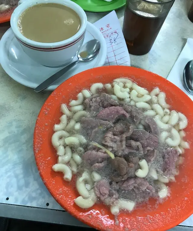 北上作樂但未到約定時間,而又可節省車費的前題下,先在極少踏足的上水稍作逗留醫肚!網上介紹的食店當然不少,但此廣成冰室在上水區的推介列上名列前茅。就為它的老字號名氣,為它的食物,更為它與我家人同名,我非試不可。哈~店面裝飾古舊,保持七八十年代的佈置,座位較為擁擠,通道非常窄,小心伙計傳菜會有輕微碰到食客的情況。而理所當然茶餐廳要搭枱啦!我點了一份HK$38的茶餐,包括一杯咖啡,牛肉通粉及蛋治。可能週末人多坐滿,出餐要點時間,等了差不多20分鐘先來一杯咖啡,港式咖啡香滑度不過不失。不久牛肉通粉就到了,牛肉有點半生熟,浸一下剛剛好,並混有少量薑絲吊味,不過整體通粉味道略淡。吃完通粉再等了會,蛋治到了。厚厚的鮮蛋夾在中間,蛋香幼滑,不錯!若到上水走走也不妨支持一下,老牌茶餐廳也算是買少見少了~…查看更多