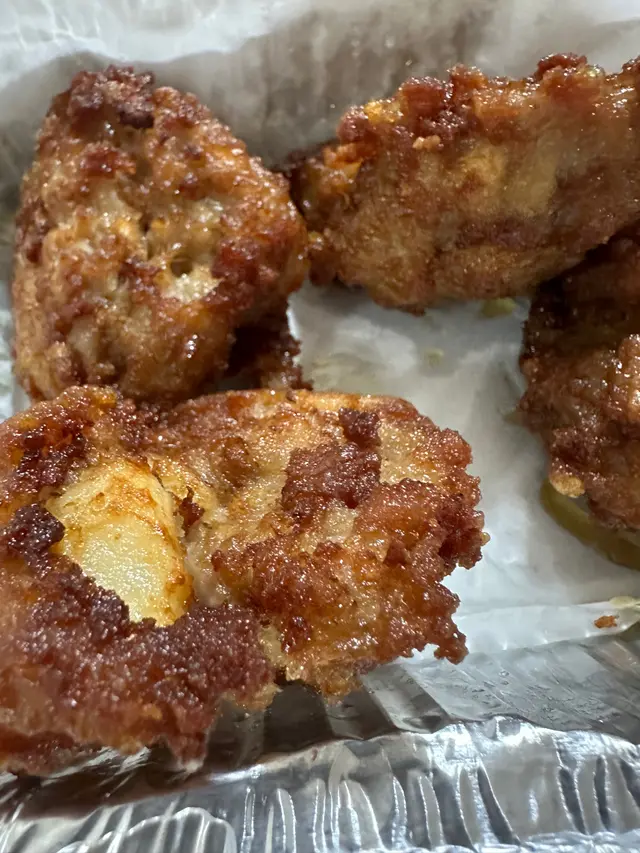 外賣質素令人震驚 $73晚餐,質素連兩餸飯都不如🥲。呢盒蓮藕馬蹄煎肉餅一打開已經畀佢嘅色水嚇一嚇,好啡黑… 心諗:唔緊要,可能好香口呢!咬佢嘅時候已經好小心翼翼,因為好硬、好乾,仲有啲炸到燶咗嘅碎碎,係要吐出嚟嘅。而咬開之後,裡面嘅口感好泥,感覺係撈咗好多麵粉同埋未熟透…真係唔敢再食落去。可惜係外賣唔係堂食,真係好想直接反映畀佢知,呢舊混合物竟然可以賣$73,香港人有無咁慘🥲。食咗兩舊真係食唔落,亦都忍唔住第一次畀食評。…查看更多