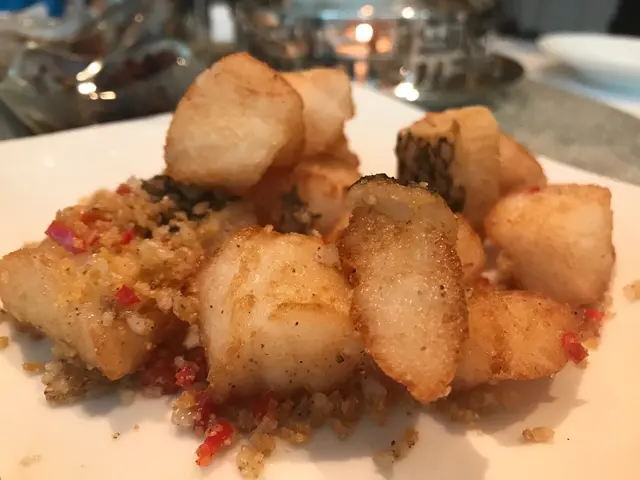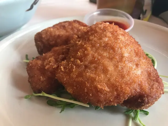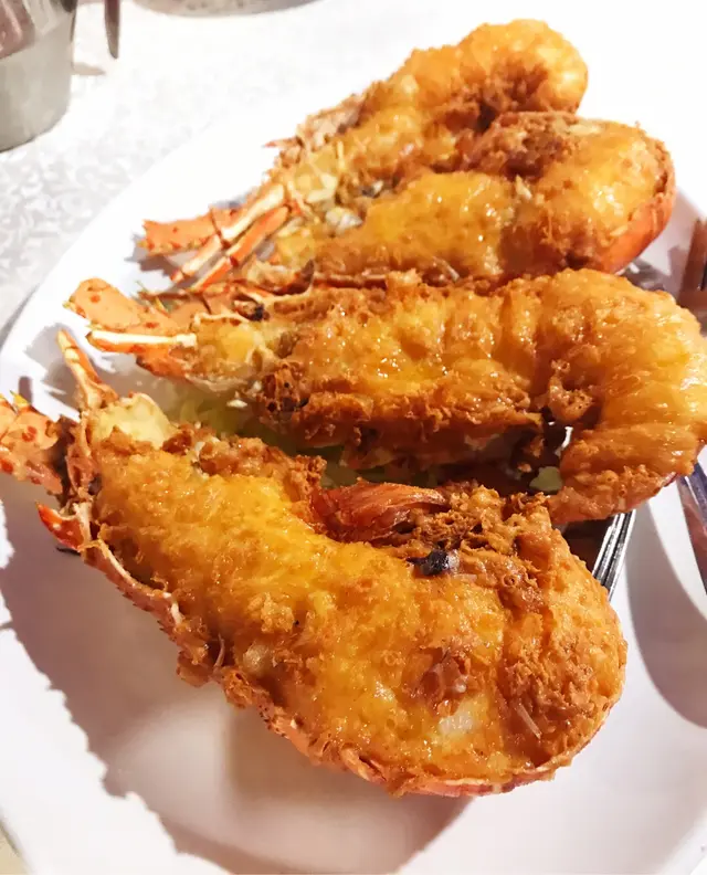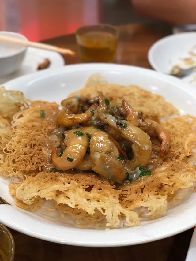 連續幾日都爆滿,訂枱訂到晚上九點半,去到原來要搭枱!如果話俾我聽要搭枱,我係唔會去!訂枱的時候預留了鹽焗雞,去到竟然同我講賣咗比其他客人。如此混亂不堪,不如話冇得預留食物,來到有就有。見到大家都話「上湯大蝦煎米粉」係必定要點的食物,所以一心黎試吓。不過出品就唔係想像中咁好!米粉確實煎得好香脆,不過冇味。蝦的大細距離大蝦有一段好大的距離。我哋點煎蓮藕餅結果來的是「鹹魚煎蓮藕餅」喊到不得了