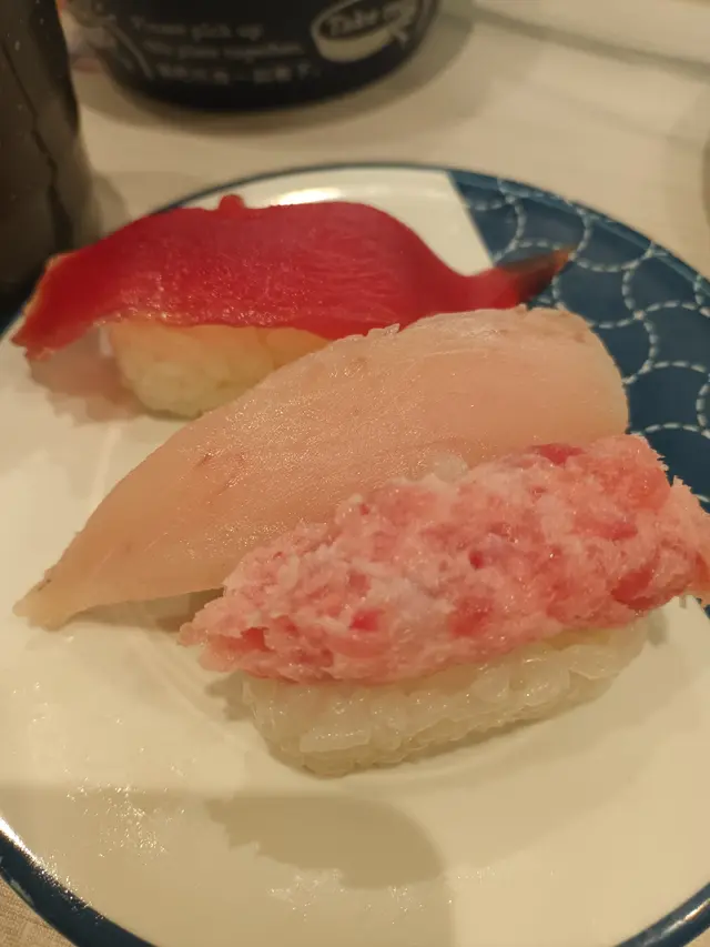 吞拿魚三味(赤身,長鰭吞拿魚,吞拿魚蓉)赤身和長鰭吞拿魚一般,吞拿魚蓉明顯比較好吃的。
