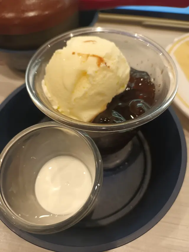 咖啡果凍配雲呢拿雪糕雲呢拿雪糕於半溶狀態時 ,比較香滑。