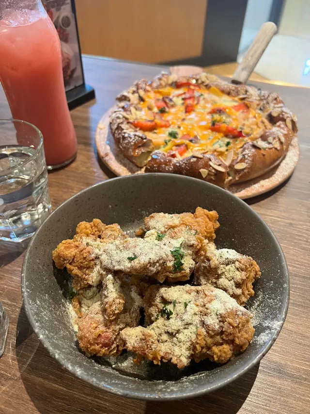 📍Pizza Maru📌泡菜海灣芝加哥 $213滿滿芝士同醬,每一啖都好豐富外圍係蜜糖杏仁邊表面甜脆,中間亦都係有芝士整體好好食😋不過多人分享比較好📌蜂蜜牛油秘制炸雞 $118(6pcs)6件雞不算大件,有雞鎚雞全翼脆口有肉汁但味道只靠外層粉末,不算濃味📌韓式海鮮炒年糕 $96揀韓式辣醬醬汁不太辣,掛汁惹味海鮮有魷魚蝦同青口魷魚彈牙年糕亦軟硬適中📌Strawberry Makgeolli $58HH上枱第一啖飲有小小過濃但飲飲下越飲越順士多啤梨不突出地址:元朗元龍街9號形點一期1樓1076號舖…查看更多