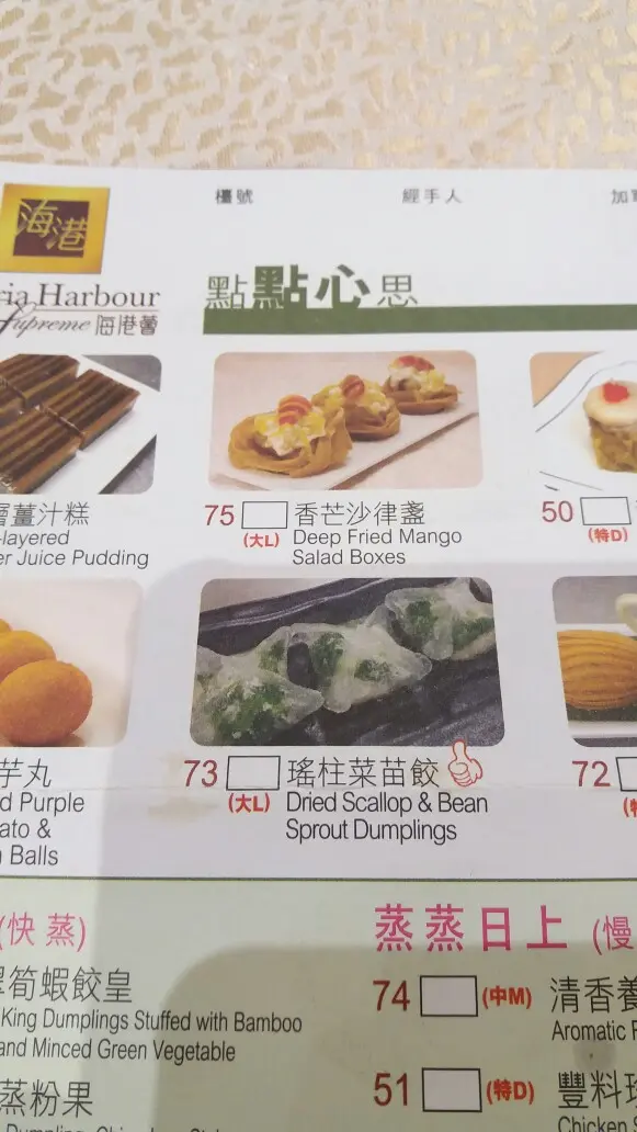 海倫的皮膚不太好,她會喜歡一些清淡的食物!今天到海港薈飲茶,看見點心紙上有瑤柱菜苗餃,她便開心地點了一客。誰料餃子內只有很少菜但卻有蝦,我們詢問服務員,她態度惡劣地狡辯圖片內顯示有大大隻蝦!我們曾數次揮手招呼服務員需要服務,她們都當看不到我們!海倫很不高興更聲明以後不再來海港薈!現今食肆行業,除了食品質素,服務態度亦影響回頭客!…查看更多