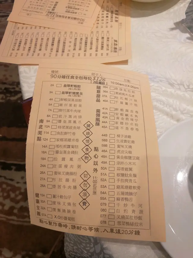 lunch試下90分鐘任食 $126一位。未入座已經比人呼喝要量體溫,(個溫度計唔係放係門口位而係放係個收銀隔離,實見到啦😔。)坐低第一時間梗係洗碗洗筷子,但用熱水洗咗2次d杯碗都仲係有油浮面😵仲比阿姐串裝到d洗碗水咁滿點拎,真係唔好意思我都唔想😔。單單坐低已經感覺態度不是很好^.^。蝦餃燒賣ok,但每人限2隻😔椒鹽豆腐同拍青瓜亦都ok。但係炸物咸水角椒鹽魷魚鬚鮮蝦腐皮卷係看得到的油膩。貴妃雞淡味d。重點一定係XO炒蘿蔔糕...放埋咀邊已經聞到陣油益味,諗返起都打冷震。同埋準備埋單先上腸粉.....…查看更多