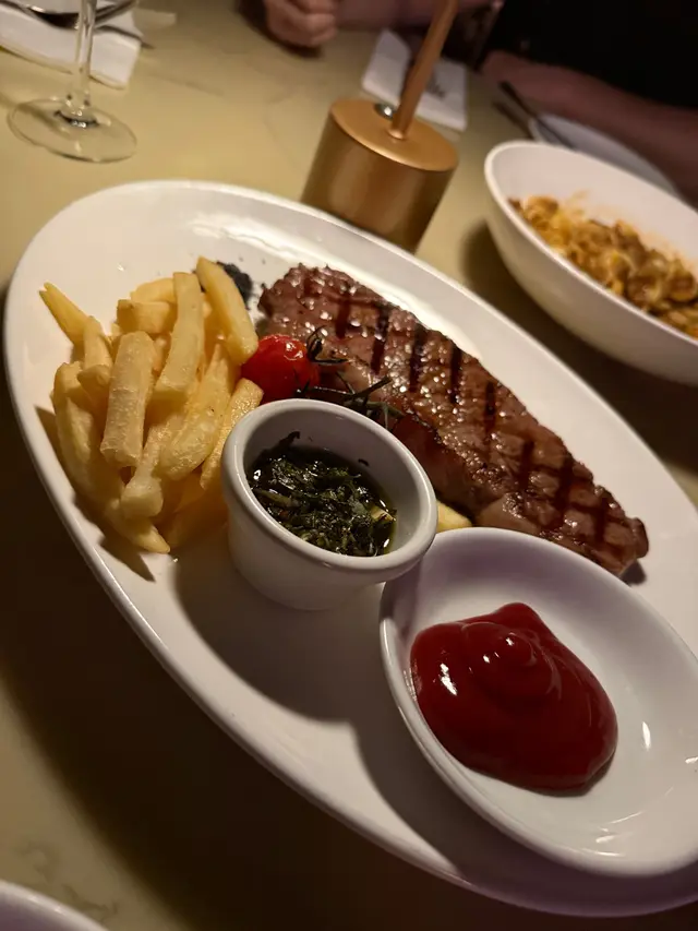 餐廳近觀塘海濱,出面門口掛住啲燈飾,幾有浪漫氣氛。之前經過幾次都只係喺出面聽人live band,今次終於去試入面嘅嘢食。燒鴨胸🦆一上枱已經好吸引,鴨肉係粉紅色,咬落去嫩滑多汁,而且切得好厚比我哋。鴨肉配埋brown sauce味道更加豐富濃郁。配菜有好脆嘅薯格、豆角、南瓜同幾粒番茄仔,成個配搭幾balance。照燒牛小排墨西哥薄餅🌮餐牌寫住薄餅,但其實即係Taco。薄餅入面夾住牛小排,照燒醬汁偏甜少少,加埋酸酸辣辣嘅莎莎醬上面,口感、味道層次豐富。隔離沙律都係酸甜,好清新開胃。白酒忌廉青口青口新鮮彈牙,忌廉湯香濃帶蒜味,有淡淡哋白酒味,係喺依個轉涼嘅天氣適合點嘅食物🫢。Mango Fizz🥭飲品就叫咗杯mocktail, Mango Fizz,入面有Mango Puree, Fresh Mint, Fresh Lime Soda,出乎我意料嘅係佢唔甜,加埋薄荷葉同青檸梳打,冰冰涼涼,又refresh又解渴。最後值得一提嘅係餐廳係寵物友善,帶埋寵物嚟用餐有20%off 嘅優惠同埋寵物小食送。同埋餐廳出面有live band表演,臨走嗰陣仲比人叫我同男朋友點歌🤣總結係食物出色,環境好chill,拍拖諗唔到食咩可以考慮依間餐廳…查看更多