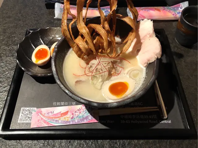 專程黎到呢度想試下佢既雞白湯拉麵,叫得金鶴,裝修果然好認真,好多金色,又有鶴。叫左佢地既招牌拉麵,上面有一大抽炸牛蒡,炸得好脆,又唔算油。到試隻蛋,味道都唔錯,又唔會太熟。雞白湯十分濃郁,味道好正。到試舊慢煮雞,雞無想像中咁滑,還好,叉燒都算唔錯。要特別提一提啲麵,都算幾失望。居然有梘水味,除左味千或者foodcourt之外都好少會遇到。麵質都一般,不過又可能係因為我試啲餸等得太耐。總括黎講各部分都唔錯,但個麵本身係幾令人失望。…查看更多