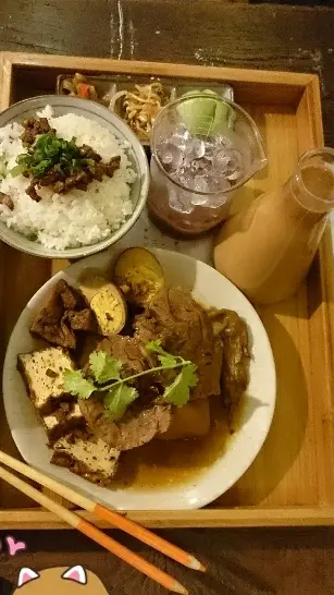 在沒有目標外加選擇困難症發作的情況下,選擇試新食物。店內裝潢以木色為主,連門口裝飾也用木條,就連筷子盒和牙籤盒都選擇木材。以簡約風格為主,與隔壁的店舖形成鮮明對比。選擇了兩份套餐,套餐的烤豬肉都可以選擇自己喜歡的醬汁,我們選擇了燒汁。不用等很久就已經上菜了。-- 豬肉真的切得很薄,拿起來就像一張卡紙一般。雖然薄,但是很大塊。燒汁配上豬肉,飽滿的肉汁以及醬汁充滿口腔,很香,豬肉很嫩,之前還擔心口感不夠,看來多餘了。唯一不足的是醬汁不夠。-- 豬肩胛,滑,嫩,很厚身,比薄切豬肉多一份爽口,肉汁更加飽滿,會讓人一試便會喜歡上。總體來說,兩份套餐都物有所值。有時候選擇困難也有好處~~…查看更多