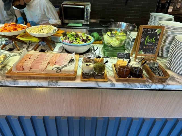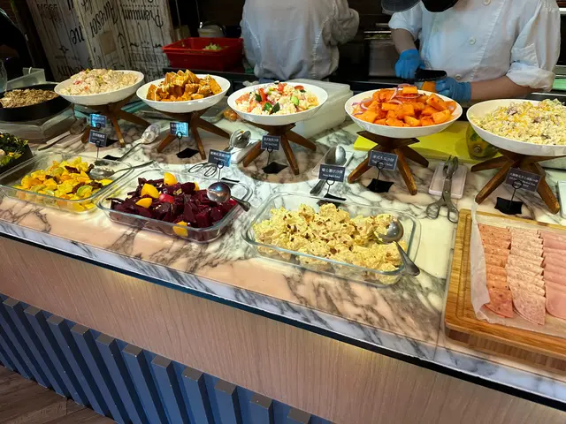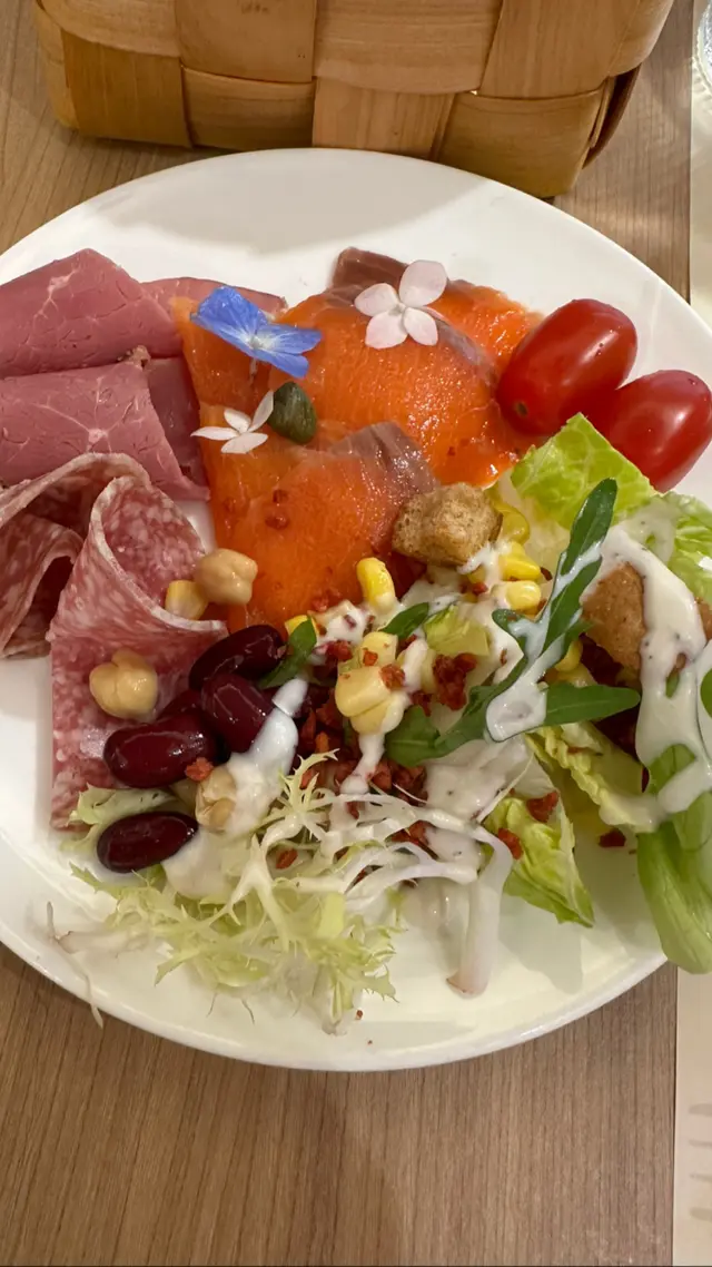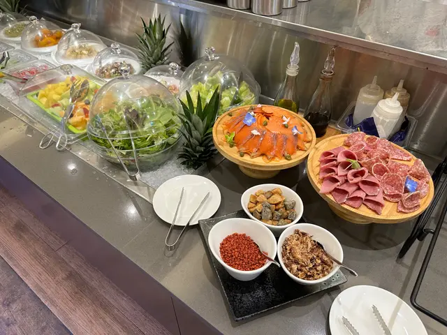 好想食自助沙律,我發現呢度有就即刻去食。沙律菜都好新鮮,鮮甜。有羽衣甘藍,加分!將沙律醬有凱撒沙律醬,胡麻醬,黑醋橄欖油。個人喜好,如果有埋千島醬就更加開心。頭盤有煙三文魚,火腿。煙三文魚唔太鹹,回本必食推介!👍🏻👍🏻👍🏻有好多細細碟嘅前菜熱盤有雞肉串燒,芝士焗雜菜主菜要左肉眼扒同鹹豬手肉眼扒要咗五成熟,肉味濃,好味鹹豬手唔太鹹,皮夠香脆,啲肉仲係好Juicy,拆咗骨勁貼心❤️,女士們要食都唔怕好狼狽加咗錢轉特飲,少有嘅奇亞籽飲品,夠fresh忍唔住再食多round 煙三文魚😆好滿足嘅一餐下次再黎要試試其他主菜…Read More