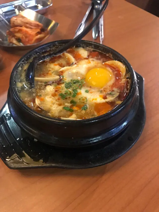天氣凍凍地有好強烈慾望食燒肉!!!  朋友話呢度有冬日套餐,仲有要韓牛食,即刻黎試試~order 咗韓冬套餐,一坐低侍應就陸續將好多碟野擺上枱,前菜有泡菜、芽菜、海帶、酸蘿蔔!一大碗沙律菜配沙律醋,好開胃。包肉食ge菜、泡菜、蛋同埋芝士係可以refill,正~~~  refill 咗泡菜同蛋,好味!!!純豆腐煲辣湯配滑豆腐,加上窩蛋同海鮮,鮮味~ 主角黎啦!燒烤拼盤!有極級韓牛西冷、大蝦、豬頸肉、雞扒、護心肉、八爪魚蝦夠新鮮,而且真系幾大隻,而且已經蒜蓉開邊,更容易燒豬頸肉用咗梨汁醃,甜甜地自製生菜包 ! 生菜 包住豬頸肉同泡菜,一啖大大啖咬落口,正呀~~~主角中ge 主角! 韓牛! 不愧係韓牛,肉唔系好肥但肉味濃,超愛~~ 平時超市買一塊韓牛都幾貴,呢個餐裡有咁多野食,裡面有埋韓牛都算幾抵食甜品係芝士年糕,好特別,第一次食芝士年糕做甜品,仲要係鐵板上…Read More