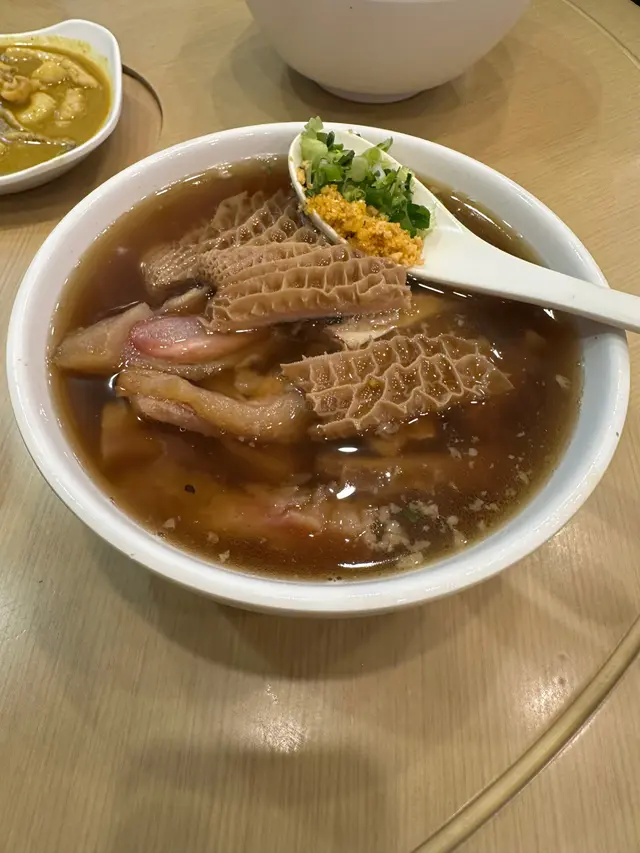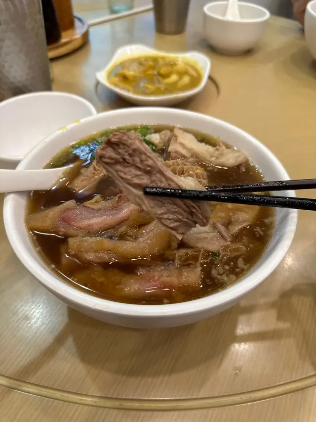 雖然香港好多地方都有牛腩食,但唔係度度都有崩沙腩食。見有人介紹尖沙咀有崩沙腩食,今日專程黎試。咖喱魷魚 $48份量都ok多,唔係好辣嗰d咖喱,有少少偏甜,唔食得辣嘅朋友都食得。 魷魚夠彈牙。牛三寶河粉 $78牛三寶係包括:牛腩,牛筋同金錢肚第一樣要讚係炸蒜同蔥佢用湯匙上,好貼心。湯底濃得黎唔會好鹹,唔油膩,會想飲多幾啖。 牛味濃,冇騷味。牛腩肥瘦適中,牛腩同金錢肚都好腍好入味。牛筋軟硬剛剛好。河粉係彈牙嗰種,唔會一夾就碎崩沙腩 拼 雲吞麵 $88崩沙腩果然係唔同d,半肥瘦,咬落油脂豐富,食落冇渣!就算係冇肥膏位置嘅瘦位都好腍,好味~雲吞有好大隻蝦梅菜扣肉飯 $68叫左少飯都飯量十足!男人嘅浪漫~  梅菜好甜,扣肉唔算肥,即使女士減肥食都唔好heavy,唔會有罪惡感。 平時有d梅菜扣肉飯d汁好油,油到都唔敢撈飯食,但呢個唔會!好清,唔油,所以係咁撈汁撈飯都唔驚好少遇到個玻璃樽汽水啊!!! 要左檸檬底,好耐冇飲凍檸樂啦! 總結: 牛三寶 同 崩沙腩 出色! 可以encore!…Read More