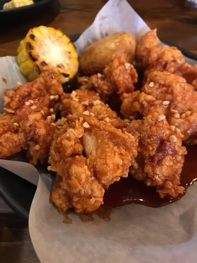 上次黎已經係好多個月之前o既事,最近食過韓國炸雞,但頂唔到癮之餘,更加徒添我對呢度烤雞o既思緒一坐低目標明確,一份無骨烤雞唔該! 韓式無骨烤雞 (原味)$158香噴噴烤雞,d皮烤到黃金色,脆脆地,上面撒咗d芝士絲。芝士係半溶狀態,夾起時候有邪惡拉絲!芝士唔太多,唔會搶咗雞o既味道無骨唔使吐骨,o岩晒懶人/唔想食到咁狼狽o既人啖啖肉,而且肥瘦適中,我鍾意! 必食推介!!!(好怕有d地方炸雞d雞勁多肥膏,又唔想食落肚,一路食,一路搣走d肥膏,煩! )咬落爆汁勁 juicy! 小心滴落個身度就咁唔點醬原汁原味食就香脆d,點呢個甜酸汁就開胃醒神d,各有各好味。半份甜辣醬無骨炸雞($118)係,我地懶,唔想吐骨有唔想整污糟手,有無骨梗係要唔骨啦~ 朋友鍾意炸雞多d,d皮沾晒汁都依然好脆我個人認為烤雞更香,不過呢個炸雞都唔會話好乾,咬落依然有肉汁。 個甜辣醬唔會話太厚太濃而搶晒d雞味,剛剛好海鮮炒飯($86)我開頭歧視我朋友做咩黎食炸雞叫炒飯,點知有驚喜!呢個唔係好乾,好粒粒分明o個種炒飯,呢個係濕身有炸魷魚擺面,炒飯有蝦、魷魚、翠玉瓜、青瓜,味道有豐富海鮮鮮味朋友狂讚! 話之後一定會為咗呢個炒飯返黎。清晒! 食到一粒飯都冇剩,好誇張!可樂$30雪碧$30值得一讚,我地先叫可樂先,因為我地問咗佢攞冰,之後後叫雪碧,冇提個店員佢都自動俾埋冰我地,貼心。…Read More