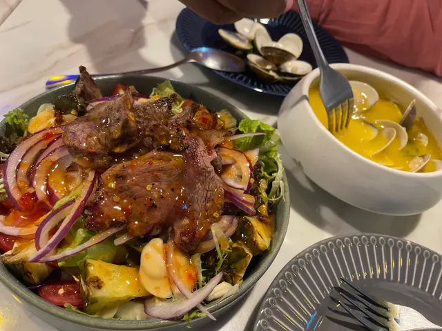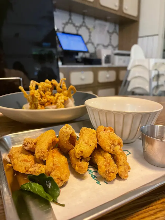 去美麗華行街,突然間想食泰菜,上網search 一search就搵到呢間餐廳,即刻嚟試一試。同朋友有一個好搞笑嘅諗法,就係喺香港次次食泰菜都係食嗰d嘢,所以我哋異口同聲都話一定要叫- 泰式醉貓炒新鮮手造卷粉。個粉熱辣辣,香氣同鑊氣十足,粉嘅質地有啲似挺身而又卷埋嘅河粉,只係比較厚。個粉雖然只有豬肉碎、檸檬葉同埋醬油,但係已經好好味😋串燒都唔錯呀,一碟有晒豬肉雞肉同埋羊肉,每款兩串。記得點埋個汁,酸味夠