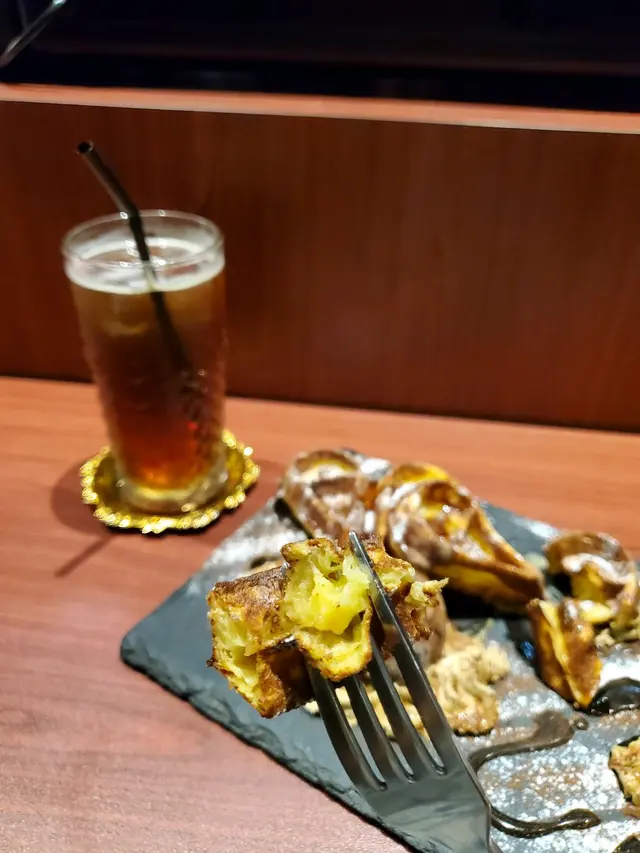 有一日朋友約piggy入元朗食飯, 梗係早啲去埋bookmarked咗好耐嘅元朗名物🤭 一見到佢有champion irish coffee即刻想嗌,但啱啱食飽又想試下pancake,所以就叫左spicy coffee,即rum, ginger 同coffee,嚟到piggy嚇咗一跳超大杯仲好重酒味,但落到喉嚨薑味開始滲出嚟暖暖地好舒服😋個pancake好啱piggy口味,比較實淨食到嘢落肚🤣 跟嘅朱古力雪糕濃郁唔甜,啱曬鍾意食甜品但唔鍾意咁甜嘅女仔😬😬😬 另外哥哥仔店員十分nice服務好貼心🥰…查看更多