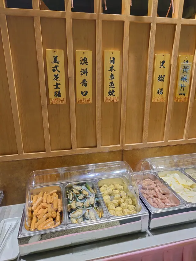 朋友話好耐無食過火鍋放題,然後佢就帶左我黎呢度。餐廳係全層,幾大。湯底有三個可以選擇。第一可選雞煲,然後再加清湯打邊爐。第二可揀鴛鴦湯底,第三就係單一中式湯底,而最後我吔就揀左單一湯底打邊爐。火鍋配料擺放企理,有蓋蓋住,飲品任飲,同樣在外面自取。椰子雞湯底:湯好足料,清甜。有椰子、雪耳、紅棗同杞子等配料。新鮮雞分開上,雞好滑好嫩。就算打邊爐打到最後,雞都係咁滑。牛肉:有五款牛,分別係安格斯牛小排、手切封門柳、和牛肉眼嚴選、牛肩胛同埋極上牛板腱。牛味濃,其中手切封門柳比較厚,有質感。食完之後我哋再encore,牛肉送上同樣都係咁靚。海鮮船:海鮮非常生猛,鮑魚同海蝦識郁架,另外仲有珊瑚蚌、生蠔、北寄貝、大蜆、龍躉同帶子。生蠔同鮑魚勁大隻,熟左都唔會縮。所有海鮮洗得好乾淨,鮮甜,正!是日精選海鮮:有大蜆同海蝦,就算唔係海鮮船嘅海鮮,都唔會馬虎。全部都大大隻,食落都係鮮甜架!刺身:款式真係有好多,切得夠大塊,用冰鎮,好新鮮,慢慢食都得。其他火鍋配料:有d火鍋配料要用qr code落單,我哋叫左手打魚同滑蝦滑。兩款都係新鮮手打,味道重,好彈牙。生菜同皇帝菜洗得乾淨,淥完翠綠爽口。甜品:雪糕有海鹽味同益力多味,香港品牌,香港製造。雪條有榴槤味、椰子味同紫糥米味道,呢個係我鐘意嘅品牌。另外仲有糥米磁同細細件脆皮朱古力批,全部在外面自取,食完滿足晒。…查看更多