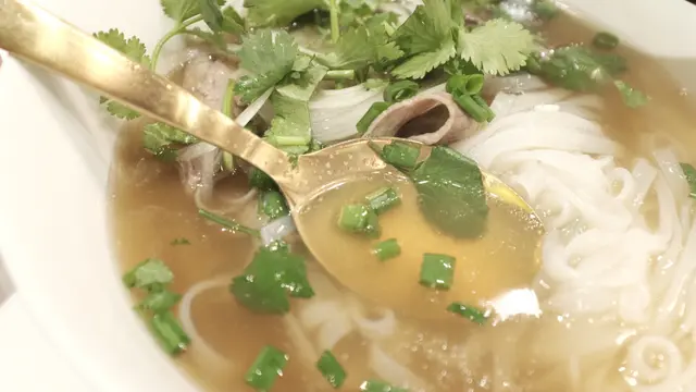 湯頭卻是不俗,清澈而富牛油香。而牛肉質素更自不在話下,但份量略少且上來時已近全熟,不太對得住那高昂的要價。湯頭好,肉也好,但反而碗中的粉卻是叫人最為驚喜的部份。粉體不走薄身路線,有一定厚度,使口感在滑溜中帶有爽勁。不但如此,每條粉都線條分明,沒有粘在一起之餘,富米香,是十分高質的粉麵主食。對了,她家的芽菜不夠爽也不夠甜,也是一個扣分位。話說回來,這個價錢,對中環人來說應該不貴,但要我月經式每月來吃一次,就真的不太提的起興趣了。…查看更多