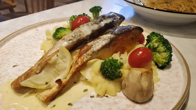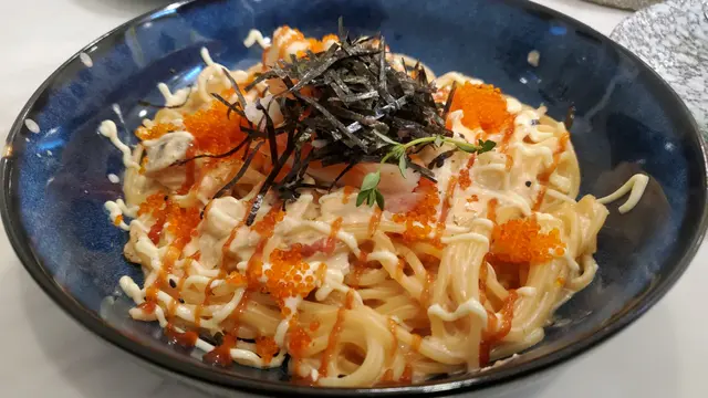 一行四人預先訂位來食lunch,店鋪不大但很cozy。由湯,主菜,小食,甜品同飲品都無得彈。飲完濃郁嘅湯,等左一陣終於有主菜。明太子帶子意粉,鰻魚飯,牛肉飯全部味道剛好,份量充足,cp值超高,值得我地等咁耐