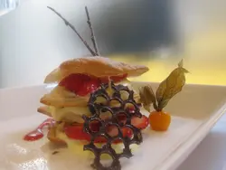 前幾天日下午剛好又經過大坑, 發現原來這裡的 Executive Set Lunch 幾吸引, 特別之處是坊間的套餐主要賣紅肉, 但這個行政午餐卻以海鮮做主打, 感覺馬上「升呢」, 早上忙完一朝決定食餐好的。迎面而來是意大利香草麵包 (FOCACCIA) 及我的至愛香芹籽麵包條, 前者用心地預先再焗, 鬆軟可口,後者香脆富香草味,不錯. 再沾上意大利extra virgin olive oil 和vinegar ,很好吃呢! 好,先來個湯開開胃,我點了這日的daily soup 海鮮薈, 湯料相當之豐富! 有蝦, 青口, 蜆, 還有一些魚肉, 湯底是蕃茄味道的, 加上這麼多海鮮一起煮, 味道實在非常鮮甜!!! 用來點香草面包絕配 ~ 據餐廳經理說,海鮮都是定期在外國空運入口,且每周新鮮運到,難怪食落鮮味十足,真材實料。主菜方面, 餐廳經理跟我推介了今天從美國新鮮運到的馬尼拉蜆配墨魚汁意粉, 說可以幫我轉這個給我試試。看得出選用的馬尼拉蜆是高級超市均有售的貨色,一碟意粉也有十多隻蜆 ,味道鮮甜沒有沙, 而墨魚汁意粉的軟硬度亦適中, 一句講哂al dente~~若不喜歡食蜆其實還有阿根延紅蝦或珍寶蟹肉意大利飯等飽吐選擇;想食好些可以加$ 50改吃法國法甸魚或煙肉高僧魚(Monk Fish)串;不嗜海鮮則可配US Prime Rib Eye 8 oz, 一於下次再試!!吃完意粉都已經開始飽了, 但看見這個相當精美的拿破崙, 暫時忘記本周的on diet大計, 食完再減。那破崙除了賣相吸引外, 甜味亦適中, 新鮮即焗的酥皮勁脆, 果然沒有浪費了食甜品的quota. ~~~另外叫的Grapetiser, 酸酸甜甜 , 很開胃呢!想不到這裡除了晚餐好吃 , 午餐也一點不馬虎,用料同樣新鮮 , 下次有時間慰勞自已時, 必定再來多幫襯;唯一美中不足是餐廳位置比較隱蔽, 而且小店坐位亦有限, 全部菜式即叫即做, 等候要些時間, 今天怱怱一小時略嫌急趕, 下次要預留多些時間好好品嚐呢!…查看更多