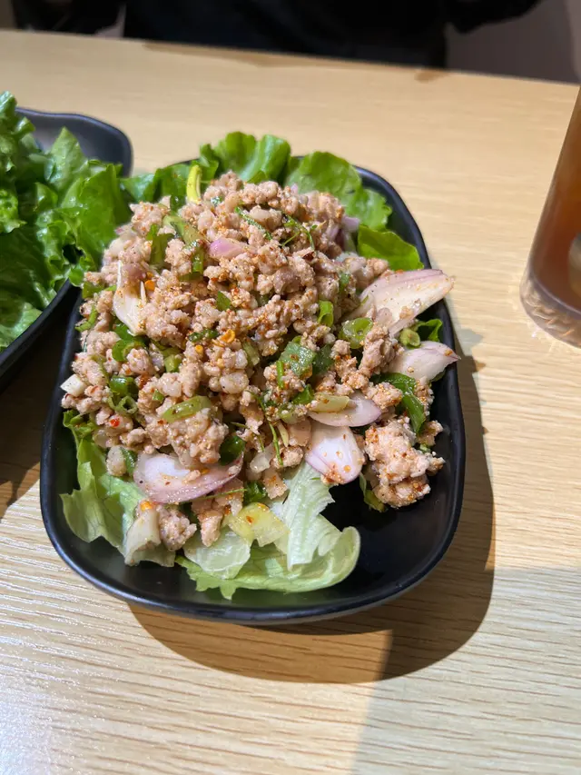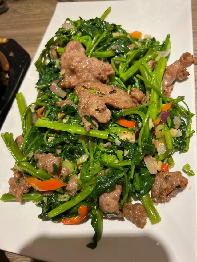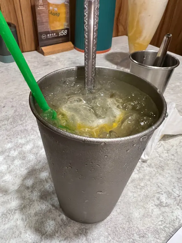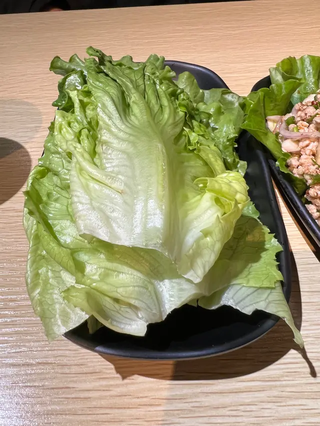 南山村多數是茶餐廳,這間餐廳是唯一的一間泰菜餐廳,萬綠叢中一點紅,當然要試一試。茶餐廳清潔整齊,員工有善。晚餐並沒有套餐,我們點了豬肉生菜包、泰式炒通菜和豬頸肉飯,再加一杯龍眼冰。生菜份量比一般泰菜餐廳的菜少,豬肉味道不錯,辣到適中,適合香港人口味。豬頸肉燒得好香,肥油完全被逼出來,因此豬頸肉沒有半點肥膩感,好吃哦!分量亦相當多,男人吃應該都沒有問題。泰式通菜味道佳,辣度剛剛好,炒菜一般都很肥膩,此處亦走不出肥膩。龍眼冰的龍眼肉很多,好喝啊!買單兩人大約$200,價錢OK !…查看更多