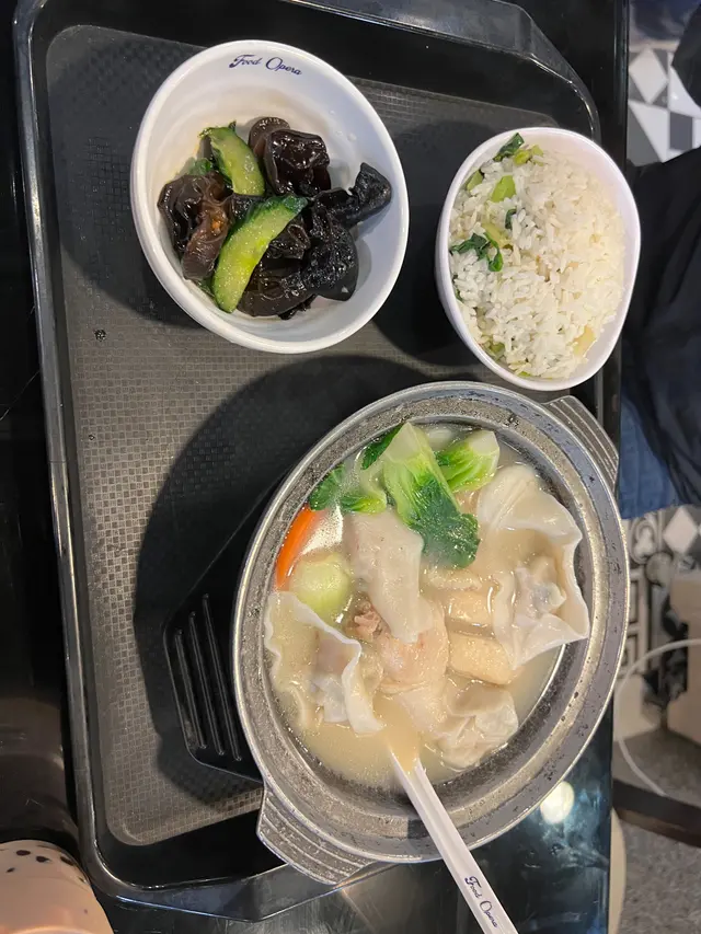 砂鍋雲吞雞有意外驚喜,雲吞鮮味,肉質新鮮有肉味,很好吃。雞肉份量很多,還有些蔬菜,營養均衡,非常好!菜飯的菜略嫌份量少一點,如能增加蔬菜便更好!加上冷盤,有雲耳冷盤,很好吃。…查看更多