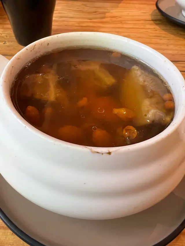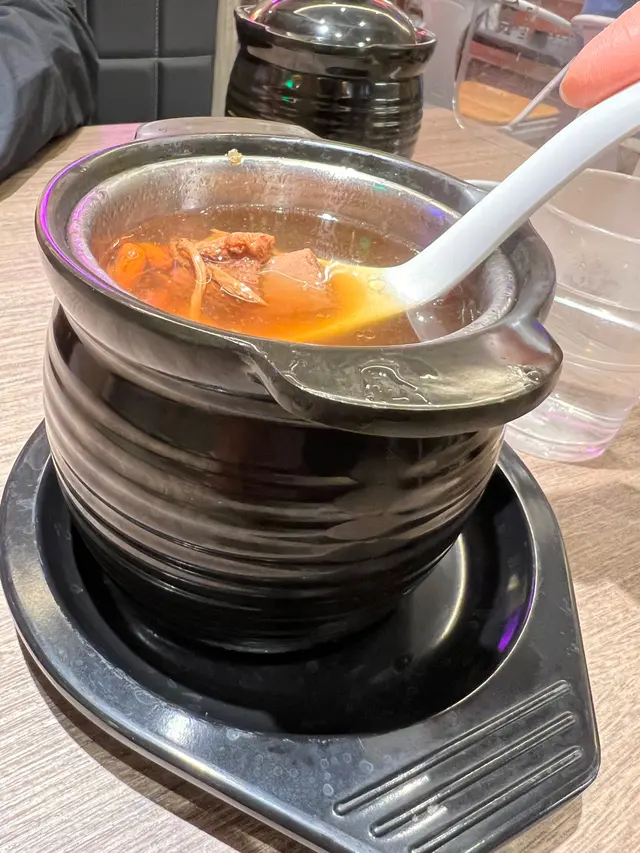 荃灣廣場有很多食肆,看到一間新開的茶餐廳,看看餐牌,二人餐相當吸引,有燉湯和兩個小菜,價錢只是百多元,便入去試一試。點了一個麻辣雞煲和椒絲腐乳通菜牛肉,再配上燉湯。雞件份量比較少,如份量能夠增加便更加好,麻辣度不足,不夠惹味,如果加辣的話應該會很好吃。椒絲腐乳牛肉炒通菜水準可以,略嫌牛肉份量少了一點,牛肉嫩滑,咬下去很有牛肉味,不會靭,算是好吃。燉湯材料比較少,和平常喝的例湯差不多,沒有驚喜。整體來說,不過不失。…查看更多