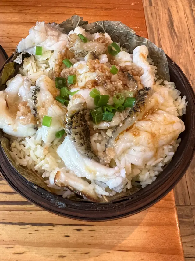 平日路過這間店總會看到人頭湧湧,心想一定要試一試,今天心血來潮終於試了,在門口看餐牌時有點兒猶豫,隔離的陌生人對我說:「試一試吧,很好吃的,我常常來。」於是,大踏步打開門進入店舖。點了蒜蓉石斑蒸飯套餐,套餐包一碗燉湯和一碟菜。石斑新鮮美味,魚肉彈牙,吃下去時肉汁在口裏溢出,魚肉精華滲入飯裏,每粒飯都充滿魚肉香味,簡直是人間極品。燉湯用料上乘,分量充足,沒有味精,有新鮮的排骨、杞子、冬菇和雪耳等材料,每喝一口,都感受到廚師的用心,非常好喝!健康之選!椒鹽魷魚香脆可口,脆卜卜脆醬將包着香噴噴的魷魚,煙煙韌韌,美味可口,是我吃過最好吃的椒鹽魷魚。另外點了鱔魚蒸飯套餐 ,新鮮的鱔魚,配上蔥花,雖然是簡單的材料,卻能令人回味無窮。難怪每次路過都人頭湧湧,果然是高質素的店舖。…查看更多