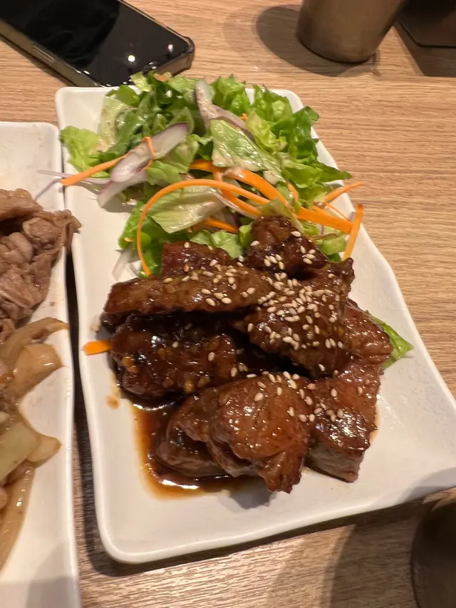 第一次來這間店吃飯,裝修簡潔整齊,座位舒適,吸引了我們進入餐廳。點了二人餐,有兩個主菜、一個小 吃、兩杯飲品和兩個甜品,大約$200。價錢相當便宜。點了一個牛柳,牛柳新鮮嫩滑,咬下去的時候肉汁溢滿口腔,很是好吃。配上沙律菜,更是健康之選。日式炒雜菜非常大碟,不同種類的蔬菜,味道不錯,下次會再吃,多吃蔬菜身體有益。再點了個香菇炒牛肉,原來是肥牛,有點兒失望,如果是牛肉片的話更加好。兩杯無糖綠茶是贈送的,由於無糖,所以比較苦。全晚最好吃的便是特濃牛奶軟雪糕,牛奶味非常重,軟雪糕質地比較實,非常好吃。…查看更多
