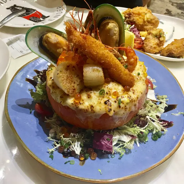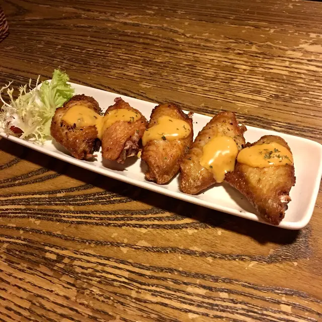無意中發現一間適合一群人聚會的地方!地點方便,太子站D出口右轉直行就到。坐得舒服,6-8人可以有個小空間暢所欲言。擺設用心,無論牆上或餐碟都走中國風。雖然餐廳是中國風設計,但食物是西式,真的出乎意料水牛城雞翼 $68水牛城雞翼即叫即焗,焗到外脆內嫩滑!雞翼帶點微辣,配上濃香芝士醬汁,十分惹味!珍寶帶子墨汁意粉 $108帶子微微煎香兩邊,肉質比較豐厚,口感較軟。我以為意粉是食完會嘴黑的墨汁意粉,可現實是加墨汁製成的意粉,墨汁味淡反而意粉感覺像手工製的,麵質彈牙而且有麵粉的味道,整個意粉比較清淡口味,不過超驚喜的!!龍蝦忌廉汁煮海鮮意大利飯 $108如剛剛的意粉是清淡口味,這個便是重口味!海鮮分別有大蝦,青口,墨魚仔,十分豐富。龍蝦忌廉汁煮意大利飯燉到濃稠綿糯,意大利飯有加入芝士所以會比較膩。不過對於重口味的我,每一口都十分滿足紫薯草莓鬆餅 $88如果只是食主菜是不夠飽的,所以甜品是必須的!鬆餅烘得外脆內軟,而且夾心是紫薯!草莓十分甜,奶油十分滑,整體好味手工啤酒 $78值得一講,這間餐廳有10幾種手工啤酒,超乎意料HAPPY HOUR嘆一杯放鬆一下…查看更多