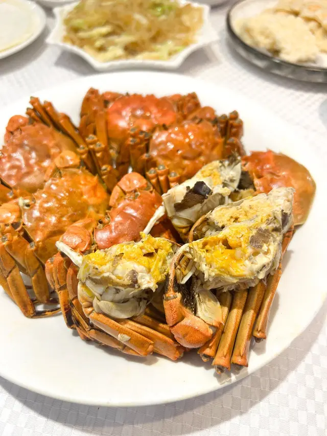 秋意漸濃蟹膏正香🍂 餐廳隆重推出大閘蟹套餐(也可單點大閘蟹)🦀🥢餐廳擁有絕佳的地理位置,能將維港夜景一覽無遺🎆✨ 無論是聚餐還是會客都是相當不錯的選擇🫶🏻✂︎❥$𝟯𝟵𝟴/ᴘᴘ 大閘蟹套餐🥢~~~~~~~~~~~~~~~~𓍱𓍱 宮廷蘿蔔:口感爽脆還帶著微微的辣度🥕𓍱𓍱 拍蒜青瓜:濃郁的蒜香惹味十足🥒𓍱𓍱 沙薑豬手:肉質爽彈緊實帶有沙薑的香味✂︎清蒸大閘蟹/1公2母🦀:𓍱𓍱 公蟹:如果凍般細膩的白膏綿密帶點黏稠感,滑溜滑溜豐腴迷人🤤𓍱𓍱 母蟹:比起公蟹質感較為紮實,蟹膏呈橙黃色,沙沙的帶有顆粒感,蟹膏香十分濃郁🤤✂︎滋補燉湯🥣:燉湯中有雞肉、螺頭,熱乎乎的喝著讓人身心舒暢🫶🏻 食材已滲入燉湯中,既溫和又清甜✨✂︎油鹽水石斑魚🐠:魚肉鮮美細膩,蔥花的加入令厚實的魚塊增加了清爽的香氣✂︎大澳海山骨🐽:豬肋排炸得酥香可口,肉質幼嫩還保持著肉汁,充滿蝦醬香,惹味又有特色✂︎鮮茄菌皇浸菜苗🥬:紅紅綠綠的顏色配搭,蔬菜清新爽口✂︎香芋糯米飯🍚:軟糯的糯米飯除了臘腸外,也加了香芋顆粒,熱氣騰騰暖胃又美味✂︎圓肉薑茶🫚:辛辣的薑茶帶有紅糖水的甜味,喝完身體即時暖乎乎☀️…查看更多