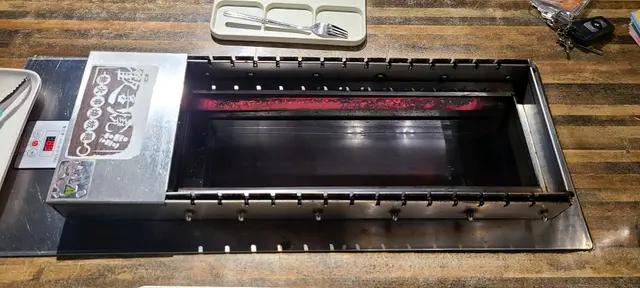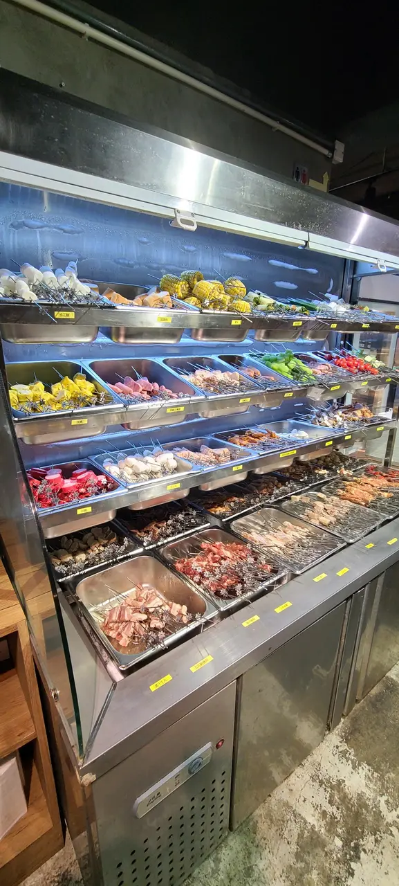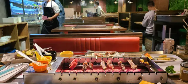 今日放假同老公去左觀塘探Lulu豬🐷之前聽講觀塘有好多好野食,所以即管上網找下,找到呢間有自轉串燒任食既餐廳~~可能我地早到,所以人唔算好多~ 餐廳空間都好闊落,全部座位都以卡位為主。每張枱中央都設有燒烤爐。串燒的選擇中規中舉,以丸同加工食物為主,肉類選擇偏肥😅除左可以燒的食物之外,仲有少量熟食同冷盤亦有雪糕,不過選擇就唔算太吸引...有個小驚喜就係每枱餐廳都會送一碟烤茄子,好味