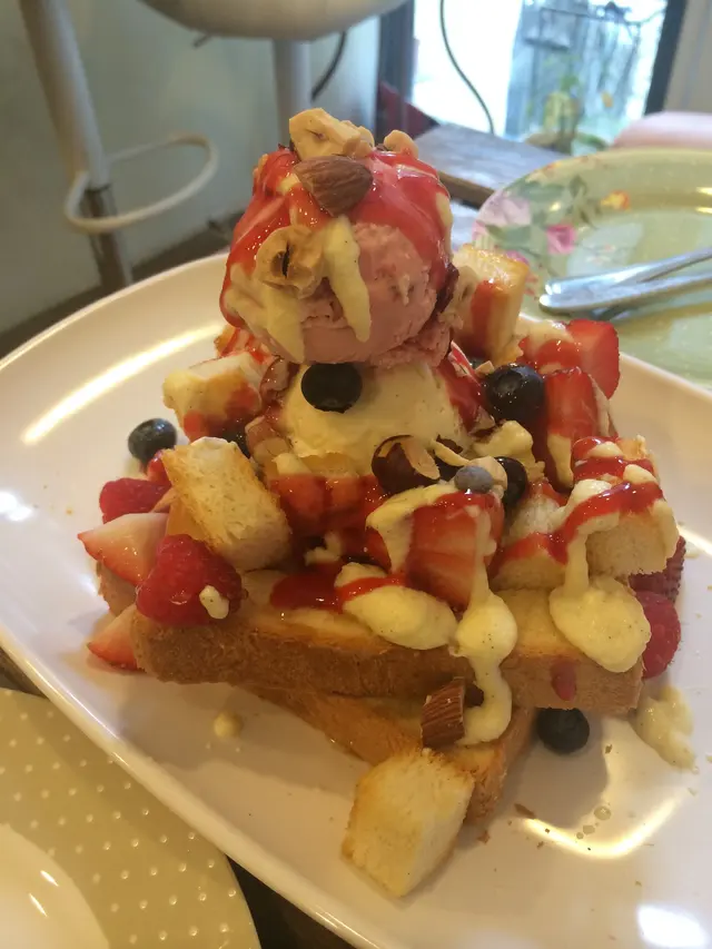 這小店其實在一年前已經見過,當時還在想,開在西營盤的小巷內,有誰會光顧呢~!? 當時連看看裡面吃什麼的衝動也沒有,因為根本很少在家附近吃東西~ 總覺得還是中環、銅鑼灣好~誰知陪我長大的這個小區,因地鐵將入區而建登山電梯,令小區SOHO化~ 雖然眼看由小時候看到大的老店都一一關門大吉有點不是味兒,但向來少在附近覓食的我也漸漸開始嘗試著各式各樣的食店~有天看看openrice見這店子原來吃crepe的~ 不禁要試試~一個星期六下午我們就來下午茶了~ 我們點了一個鹹牛肉crepe,一個berries味的厚多士和兩杯咖啡~先來的鹹牛肉crepe,真的跟想像有點距離,我這港燦腦海中的鹹牛肉就是罐頭吧  誰知來了個西式的鹹牛肉,而且整個crepe是室溫的。心想,這次可能要失望了⋯⋯ 怎想到原來是用料好也用心思去做的,算不上大好。但$66一件,不能說物超所值,但就是非常合理~ 內裡真的是一片一片的牛肉呢~咖啡就不太特別~ 不說了~另外,厚多士真的大愛~~ 是蜜糖多士,加上mixed berries~ 還有兩個雪糕球~ 多士香脆又帶少少甜~ 十分好味~ 而且berries都是很新鮮的~在到這店之前一兩天到過尖沙咀打算去吃那家台灣到港開業的咖啡甜品店~ 其實在台灣試過個人覺得其實很一般~ 但平日下午三點去店員說當天輪候籌都派完了⋯⋯ 太可怕⋯⋯ 要我選,我真心的覺得這家小店的厚多士質素也比得上⋯⋯ 而且很有人情味~ 所有食品都是女主人一手一腳做的~ 忙完就會跟食容閒聊一下,還很好客的請我們試movenpick的新口味梨味sorbet~ 還有咖啡~ 聽說她開店前是在酒店及會所工作的~ 所以習慣一身廚師造型,比較衛生~ 聽她說著說著⋯⋯ 真的被她打動了~ 在這個金錢世界還有她這種為夢想堅持的人真不容易~ 真的會多多支持她~…查看更多