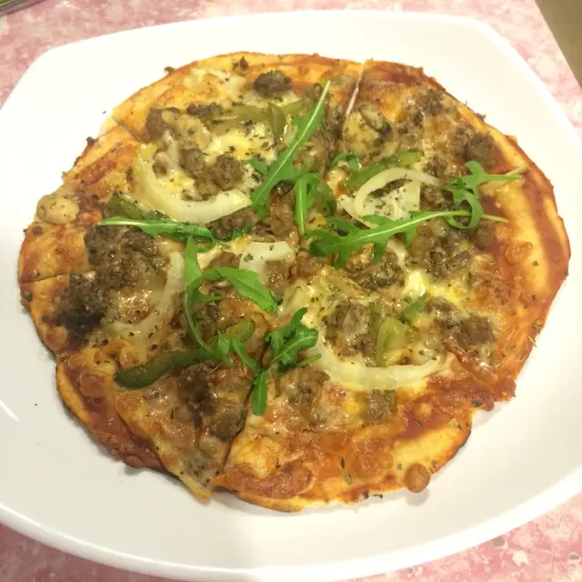 和男友放工後在般含道下車後行正街的電梯往高街去找吃的。行到電梯一半想吃pizza~ 一想,這附近pizza也太多吧。突然想起前幾天經過英華台那家店在派pizza試食,味道也不錯。老實說,這家店不派試食的話,單從店面色彩繽紛的,我以為是小朋友學習的補習社。  大概晚上九點,店內沒有客人。在門外看餐牌,晚餐湯或沙律,一個八吋pizza加飲品 $65 (我們點凍飲檸檬茶加$5) 給他一個機會試試看。點了至尊pizza~ 賣相味道也很不錯,皮薄餡靚。有點喜出望外,跟進去時看見摺枱圓櫈及中年員工的expectation是兩碼子的事!就是說不要以貌取人吧!  不喜歡裝修「簡單」如店名的下次就要叫外賣了~…查看更多