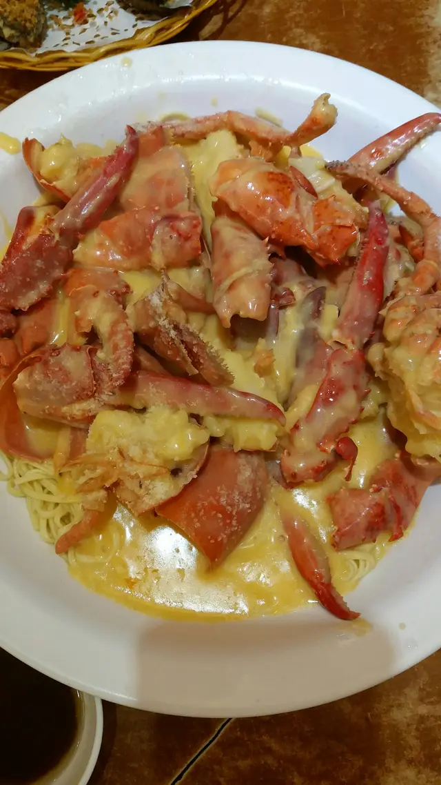 今年生日飯去全記食。費事諗叫餸,所以叫左套餐。六位套餐仟五蚊左右,十幾個菜中可選六個餸,我地只揀海鮮叫(因為冇理由叫炒菜或生炒骨㗎嘛):芝士龍蝦伊面