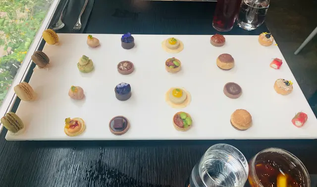 星期五放半天假同朋友食afternoon tea,一直被它的廿四件甜點+點心的擺盤吸引住(二人份),終於有空去試!味道相當唔錯,一排甜點一排鹹點,細細件味道豐富,一點似法國前菜的開胃菜咁,有鵝肝,魚,海鮮,甜品有macaroons ,chocolate mousse,yam tart, puff,非常滿足。仲有包兩杯咖啡或茶。環境偏暗,但空間隔離夠寬敞,服務都ok!…查看更多