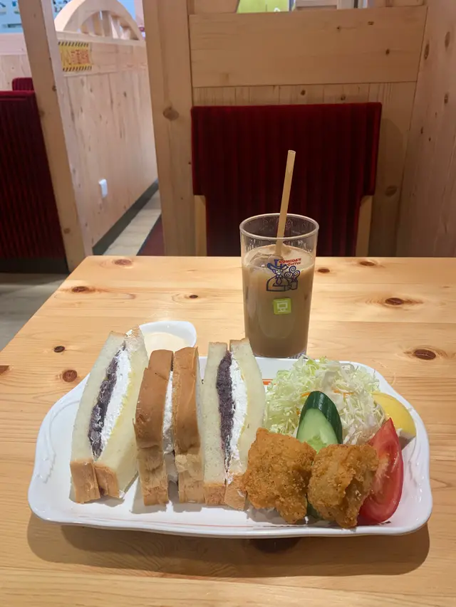 紅豆忌廉三文治+炸雞沙律炸雞脆口多汁,椰菜沙律可以解油膩,紅豆忌廉甜度可以,豆乳咖啡比較一般偏淡。下午茶餐$69,還可以!環境可以,分隔有一定距離,座位舒適。服務一般,自助落單!…查看更多