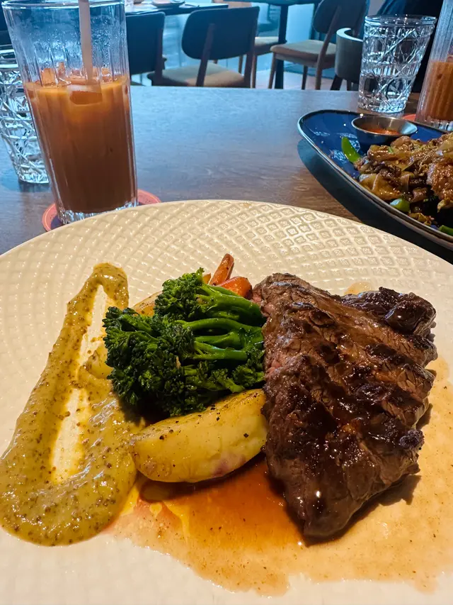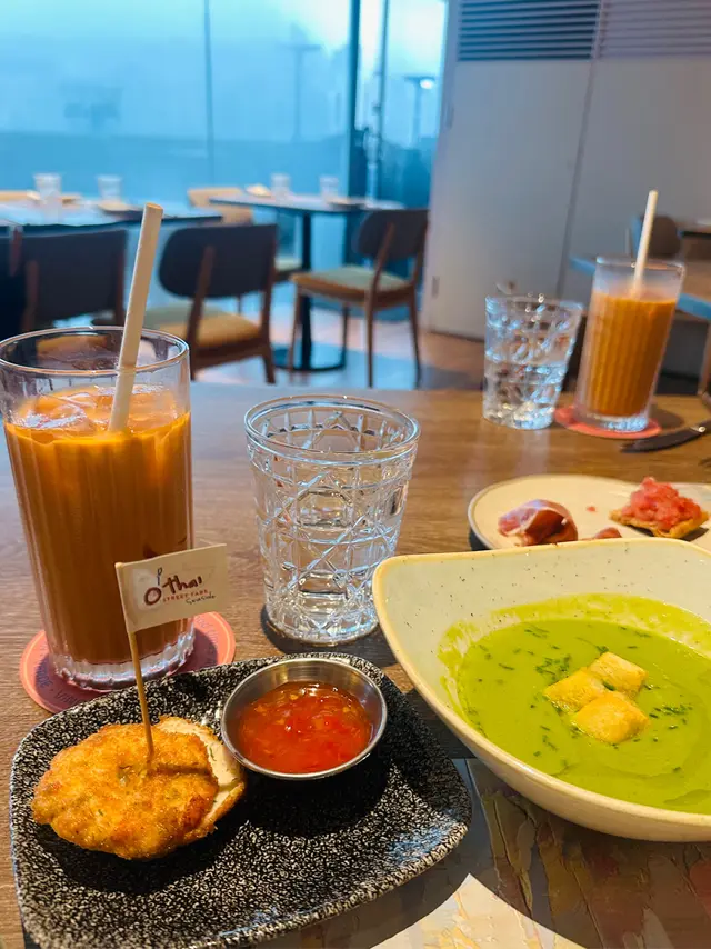 今日同朋友嚟到黃埔海傍呢間O’Thai Restaurant,真係被佢個無敵維港海景震撼到!超大落地玻璃望住成個維港🌊,仲有户外座位可以吹住海風食飯(可惜紅雨無緣坐出去😢)。環境舒服到呢~仲要係罕有意泰fusion菜,一次過滿足兩個願望! 🦐泰式炸蝦餅 - 即叫即炸熱辣辣,外脆內彈牙,點埋甜梅子醬超開胃 🥩慢煮熟成和牛 - 肉質粉嫩軟腍,醬汁調得剛剛好 🥭芒果糯米飯 - 芒果甜到爆燈冇渣!糯米飯用蝶豆花染成雙色,椰漿香濃得嚟唔膩,正宗泰國風味 ☕泰式奶茶 - 用真正泰國茶葉沖製,茶味超香濃 午市套餐人均$200左右對住咁靚海景真係抵到爛!下次一定要晴天再嚟坐户外位,睇住維港日落食飯肯定浪漫到爆🌇 …查看更多