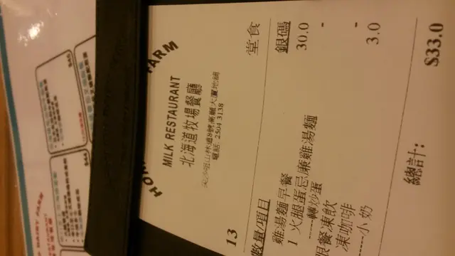 早呀。。。 北海道牧場餐廳 2014-07-04早上工作,不吃早餐真的不行,今日山林道工作,自然想起這間北海道牧場餐廳。點了雞湯麵早餐,當然少不了這裡最出名的北海道三點6牛奶炒蛋, 炒蛋滑的程度不容置疑,味道真的不錯。至於忌廉雞湯麵,味道也特別, 真的是用忌廉雞湯做湯底的, 這個特別的配搭原來都頗為配合,不錯。早餐過後,努力工作。…查看更多以上食记乃用户个人意见 , 并不代表OpenRice之观点。赞好分享早呀。。。 北海道牧場餐廳 https://s.openrice.com/QrLT0AZma00检举 张贴 评分3味道3环境3服务3卫生3抵食用餐途径堂食