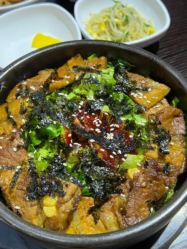 在香港一直想吃韩料,无意中发现这家就进来试试,结果遇到了正宗的韩国料理🤣老板是韩国小哥哥,正不正宗可想而知!小哥哥会说英文,不用担心交流会有障碍哈,而且老板特别热情,笑起来很帅😂点了一份五花肉石锅拌饭,确实和之前吃的不大一样!首先饭菜绝对是现做的,不是预制菜,可以放心吃!五花肉很多很大一片,吃起来很过瘾,再配上辣酱拌饭,特别下饭!!但辣酱不会特别辣,是那种香辣,不能吃辣的也可以放心点!!每桌都会送四样小菜,每种都很好吃,而且非常解腻,恰到好处