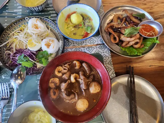 Pleasant surprise at Airside - probably the best Thai food in the area, haven't stepped into a good new restaurant in a very long while... Fried pork chop in fish sauce is a must try, you won't regret it. We had the pork boat noodles, will probably try the beef version next time too. Thai iced tea was also very tasty - of the right richness and sweetness. Their signature noodles with green curry also very interesting, although we would have preferred the noodles itself to be hotter, so more matching with the hot green curry sauce (probably). Green curry sauce itself was excellent though. Saw other guests walk in with the biggest dogs ever, and the staff arranged some spacious seats for them on the sides, very wholesome to watch