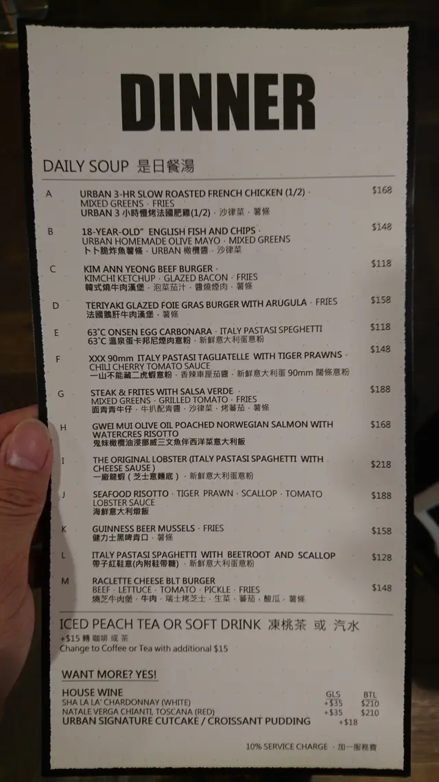 12:00 LUNCH 在灣仔來說, 真係去邊都易搵位D, 呢間餐廳格局似貴貴地過100 蚊, 雖然真係有$100+ 的餐, 但都有88蚊之選, 但加一後其實都係100 落樓, 方便找數都免強算係優點之一。講返食物方面, 湯濃度適中, 唔會太濃, 重口味朋友就自己加料吧; 個包普普通通啦, 唔會有驚喜, 又唔會有驚嚇; 主菜啦....果日係.........唔記得個名, 係牛黎的!! 正~~~~~~~~野飲就都係果D 啦, 份量夠大杯, 吹多陣水坐多陣呢間真係一流, 靜局(12:00-13:00) 。…查看更多