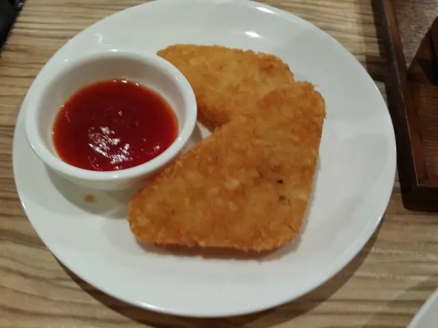 Hash Browns (脆薯餅) - 初見到平平無奇,用刀砌下,內裏的薯粒很易散;但當放入口中,會食到脆脆的餅面,而薯粒帶微鹹及充滿濃濃的薯仔味,好食到連付上的茄汁都不用點,已食到原汁原味的薯仔味。