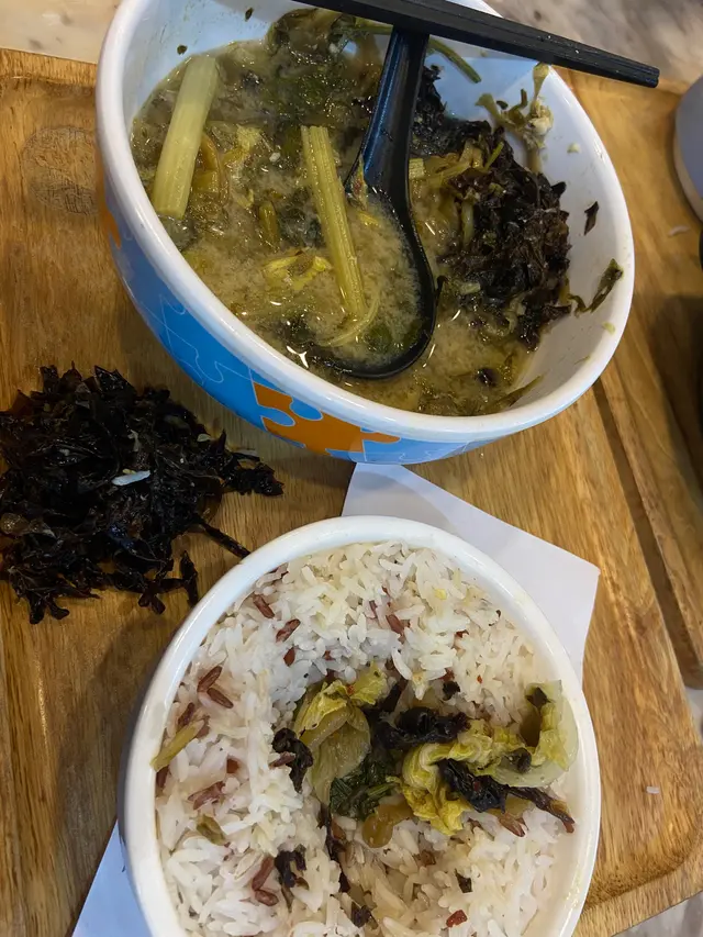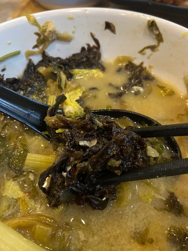 平時有食開其他分店嘅湯加但呢間湯加真係特別難食我叫酸菜酸辣魚湯都勁大陣魚腥味成間鋪都有種又縮又臭嘅味 特別係個紫菜 平時喺其他湯加食開嘅紫菜都唔係呢個狀態(睇圖好似一啲食物殘渣咁款然後一食落口成口沙 都唔知有無洗過