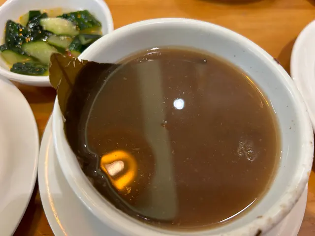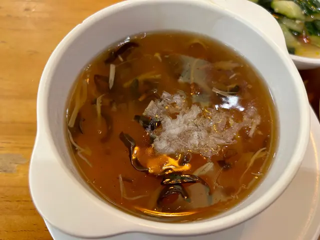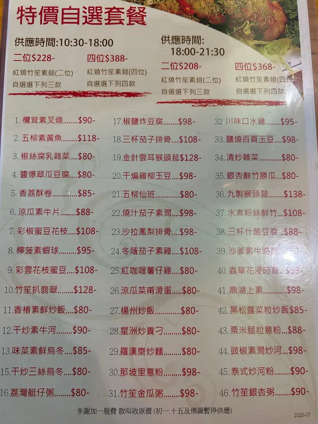 25/7/2023 放工去佐敦同老婆買完嘢,咁啱經過呢間餐廳,見門面都唔錯,於是入去試吓,地方都算大,冷氣十足,可能剛7點左右仍然有位選擇,揀咗個卡位。樓面人手充足,好快已經set好位同送上前菜。餐牌都好多款式,様樣都想試,但發現原來亦有套餐,所以就揀套餐算。套餐都唔少選擇,二人餐仲可以揀三款,都算係咁。首先有個齋湯,都幾濃,似去濕料,有冬瓜。跟住就係紅燒竹笙素翅(套餐包埋),味道比較淡。楝咗沙拉鳳梨排骨,酸酸甜甜,都幾好味,好開胃。跟住係干煸雞柳玉豆,香噴噴,唔會太喊,夠味!黑松露菜粒炒飯,都OK, 不過黑松露味就好輕。註:已問侍應確認,以上三款為套餐份量,如散叫份量多啲。原來仲有糖水、甜品送渣咋糖水黑糖紅豆糕 總結:不過不失,味道適中,套餐份量唔多,剛剛飽,都叫食得過。…查看更多