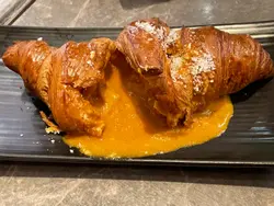 好過去食自助餐 🤣牛角酥當然正啦 不過怕包包太飽滯都係1個夠晒數 包包外脆內爆湯燒蠔都係任食不過個汁就比較辣 係惹味既之後就到鳳梨黑毛豬甜甜地幾好味 魔鬼魚意大利飯好creamy 足料蟹肉伊面最後當然唔少得甜品啦幾飽都好都要必試椰子雪糕同焦糖布甸